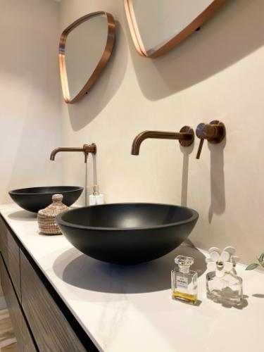 Deze badkamer is ontworpen met oog voor detail en biedt een perfect balans tussen stijl en comfort. De combinatie van strakke lijnen, mooie materialen en goede verlichting maken het een ideale ruimte om tot rust te komen. Samen met de interieurontwerpster heb ik de ruimte vastgelegd om de functionaliteit en de moderne uitstraling te benadrukken, zodat de badkamer niet alleen praktisch is, maar ook een visueel statement maakt in dit huis.