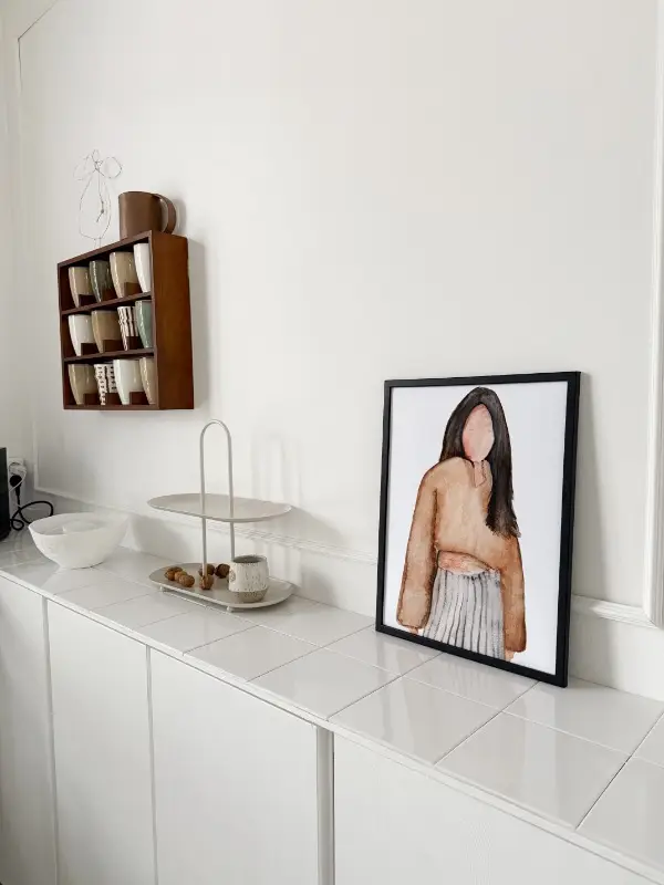 Ebba komt zowel solo als in combinatie met andere kunstwerken tot haar recht. Zo kun je haar bijvoorbeeld combineren met andere aquarelportretten of minimalistische tekstposters. Zo ontstaat een sfeervolle en stijlvolle gallery wall vol kleur, emotie en karakter. Natuurlijk kan Ebba ook alleen worden opgehangen als eyecatcher in je interieur.