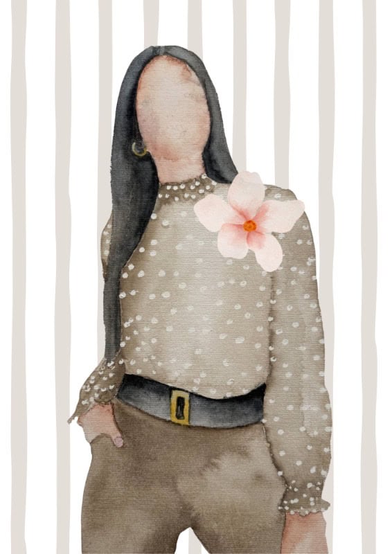 In plaats van een standaard witte achtergrond heeft Liv een subtiele gestreepte achtergrond. Hierdoor krijgt het portret een moderne twist en past het perfect bij de nieuwste interieurtrends. Zo voelt je ruimte direct fris en stijlvol aan.